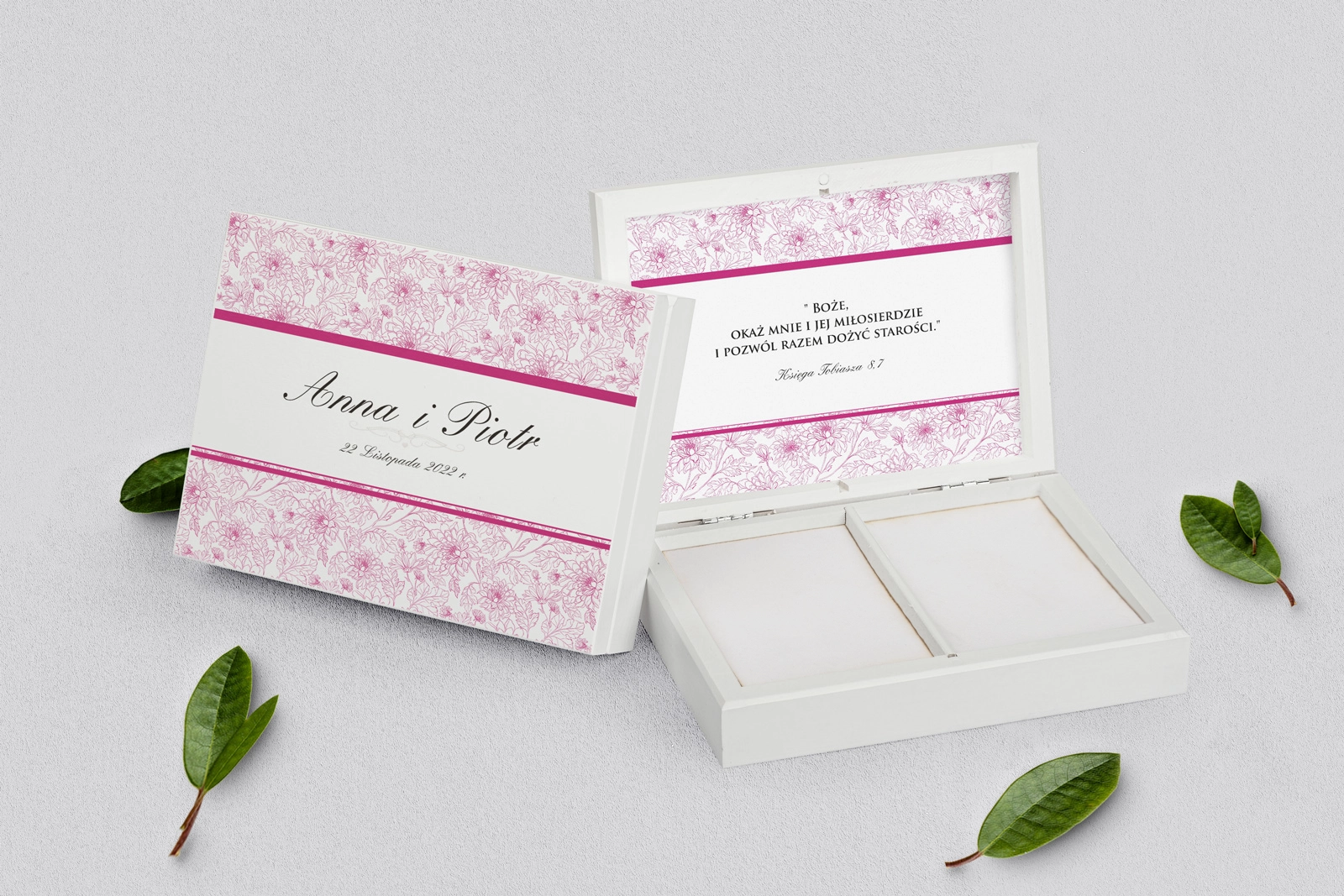 Na tej karcie produktu kupujesz Pudełka na obrączki w konfiguracji określonej w specyfikacji.