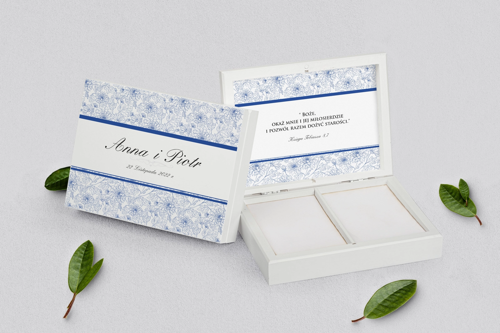 Na tej karcie produktu kupujesz Pudełka na obrączki w konfiguracji określonej w specyfikacji.