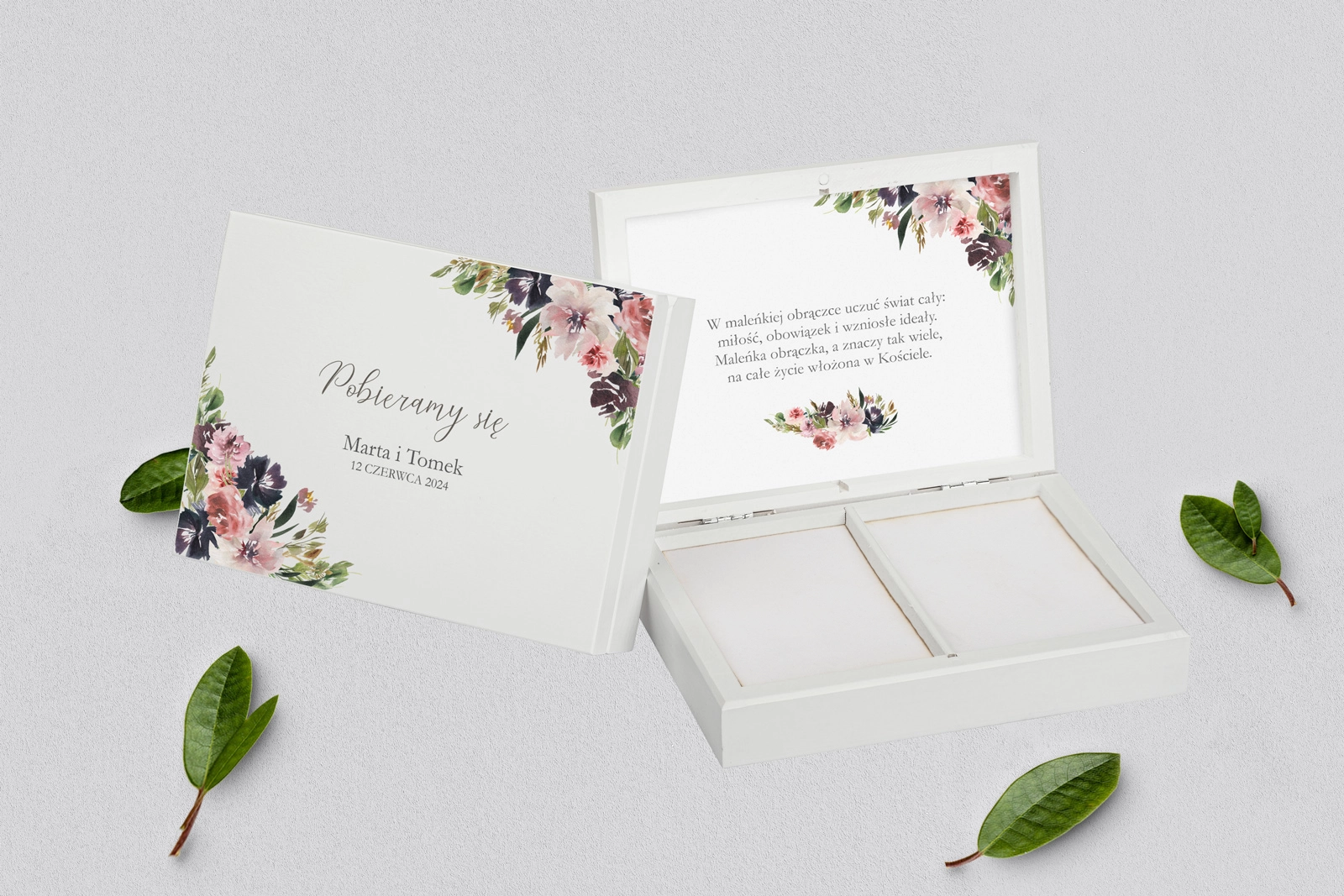 Na tej karcie produktu kupujesz Pudełka na obrączki w konfiguracji określonej w specyfikacji.
