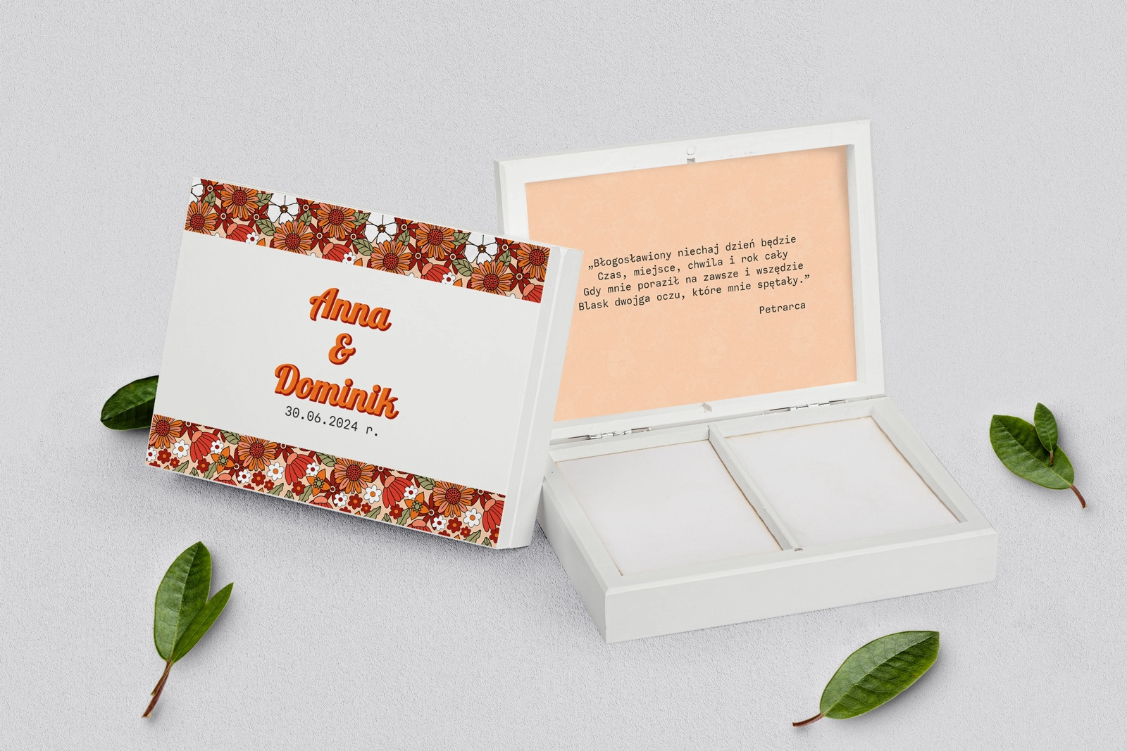Pudełko na obrączki prostokątne białe - Retro Style Motyw 3