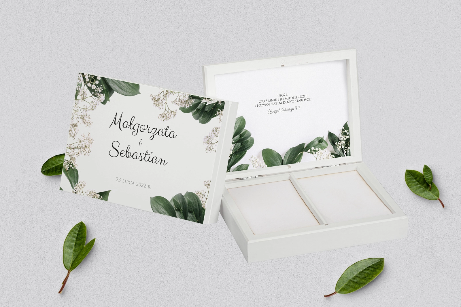 Na tej karcie produktu kupujesz Pudełka na obrączki w konfiguracji określonej w specyfikacji.