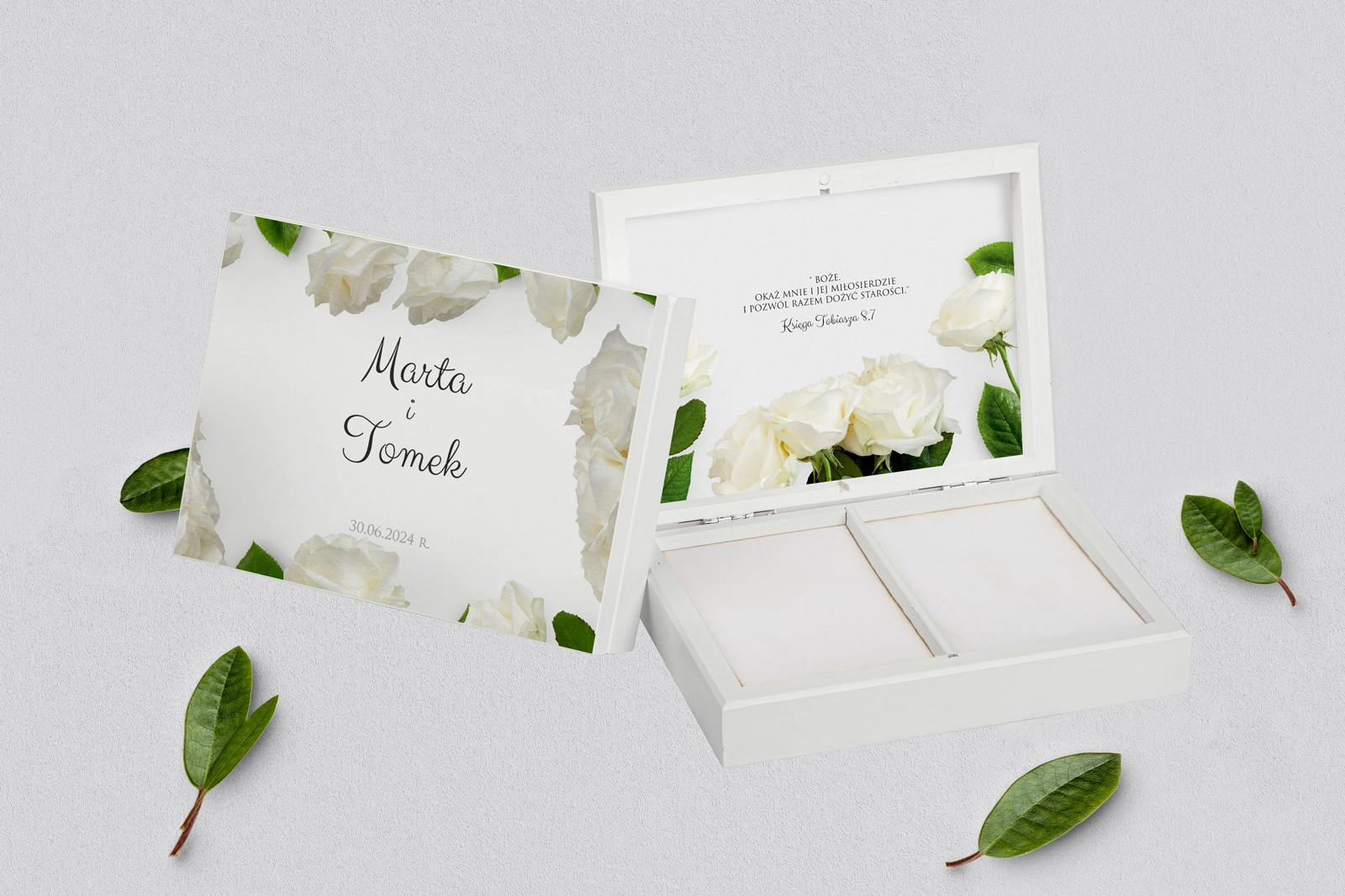 Na tej karcie produktu kupujesz Pudełka na obrączki w konfiguracji określonej w specyfikacji.