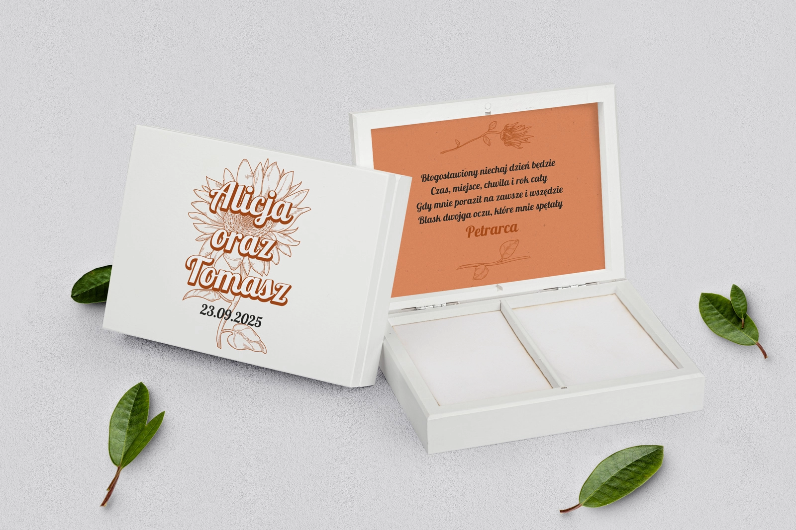 Pudełko na obrączki prostokątne białe - Sunflowers Motyw 2