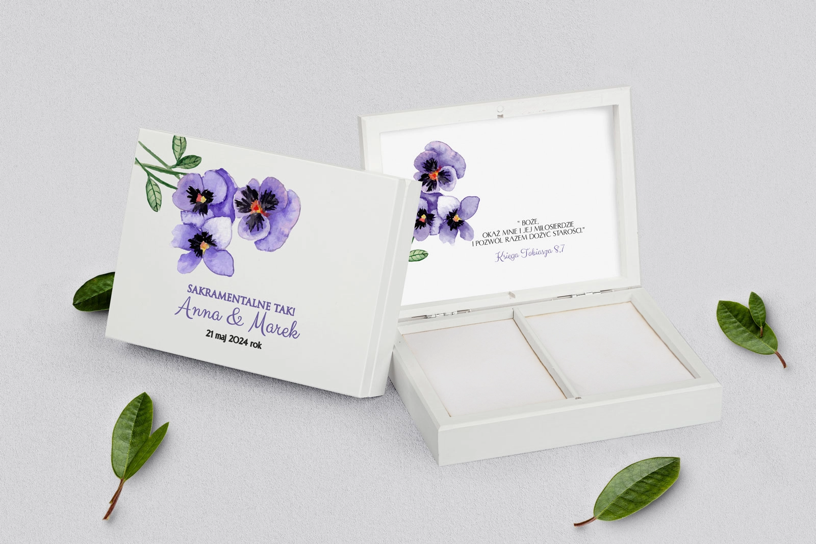 Na tej karcie produktu kupujesz Pudełka na obrączki w konfiguracji określonej w specyfikacji.