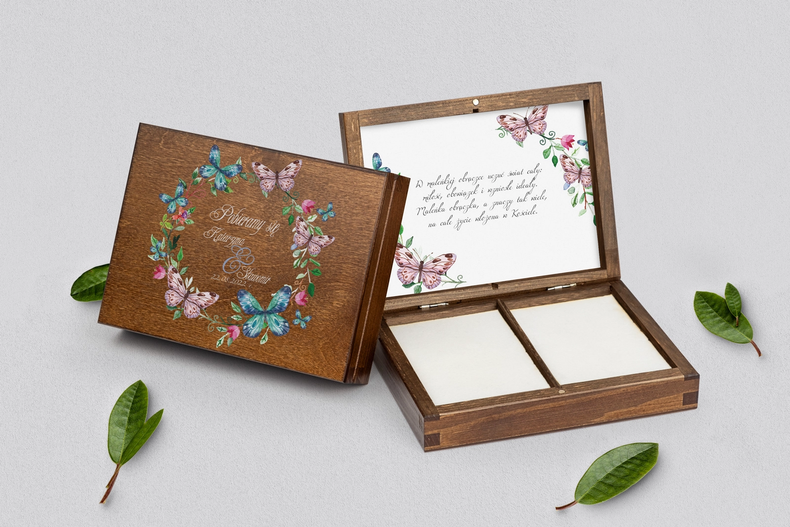 Na tej karcie produktu kupujesz Pudełka na obrączki w konfiguracji określonej w specyfikacji.