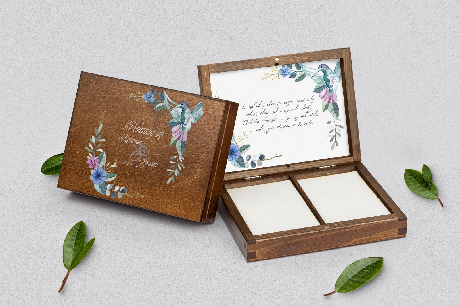 Na tej karcie produktu kupujesz Pudełka na obrączki w konfiguracji określonej w specyfikacji.