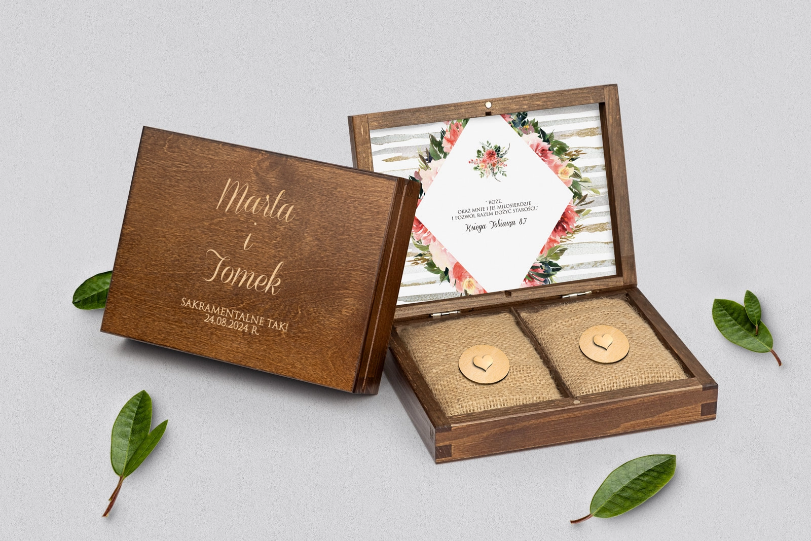 Na tej karcie produktu kupujesz Pudełka na obrączki w konfiguracji określonej w specyfikacji.