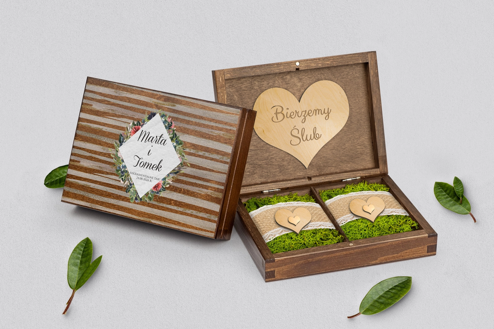 Na tej karcie produktu kupujesz Pudełka na obrączki w konfiguracji określonej w specyfikacji.
