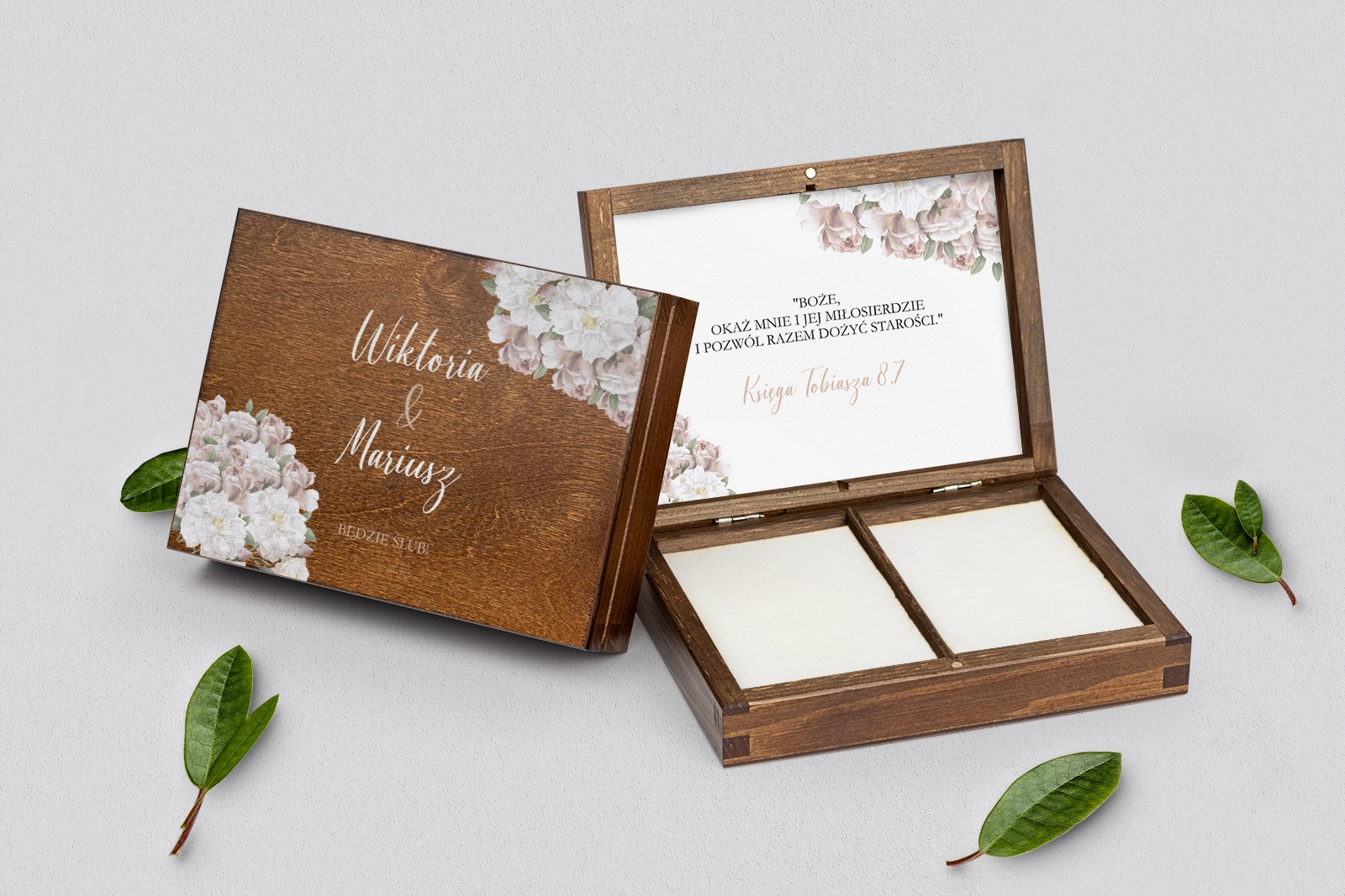Na tej karcie produktu kupujesz Pudełka na obrączki w konfiguracji określonej w specyfikacji.