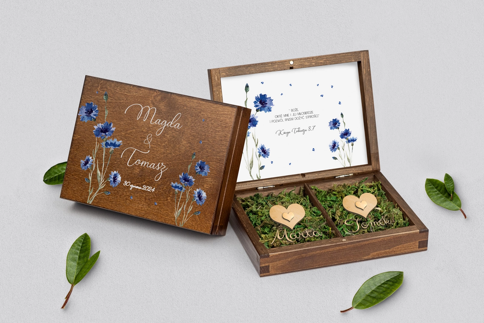 Na tej karcie produktu kupujesz Pudełka na obrączki w konfiguracji określonej w specyfikacji.