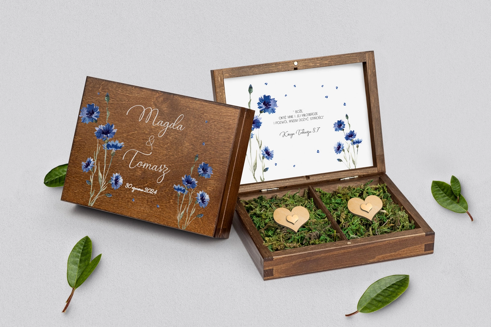 Na tej karcie produktu kupujesz Pudełka na obrączki w konfiguracji określonej w specyfikacji.