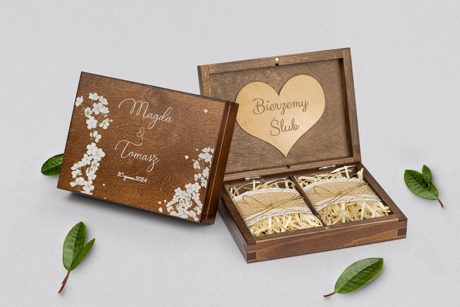 Na tej karcie produktu kupujesz Pudełka na obrączki w konfiguracji określonej w specyfikacji.