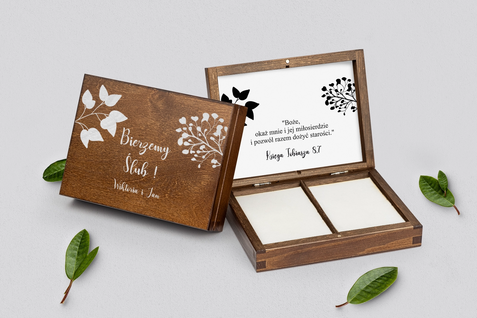 Na tej karcie produktu kupujesz Pudełka na obrączki w konfiguracji określonej w specyfikacji.