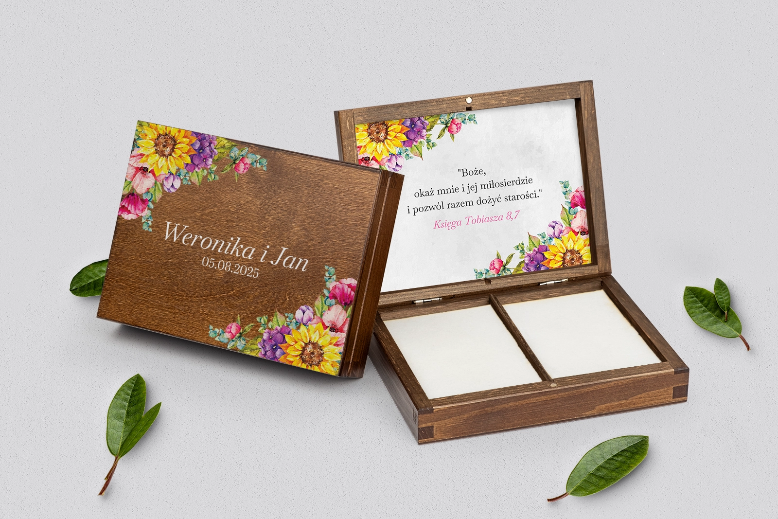 Na tej karcie produktu kupujesz Pudełka na obrączki w konfiguracji określonej w specyfikacji.