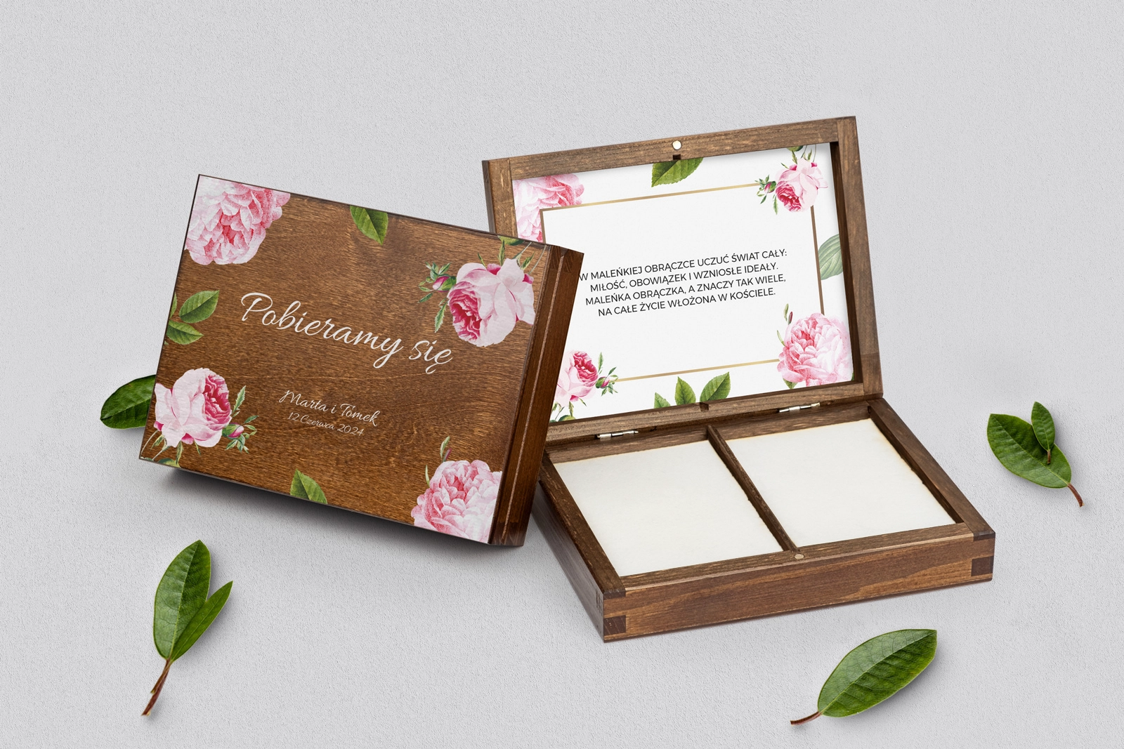 Na tej karcie produktu kupujesz Pudełka na obrączki w konfiguracji określonej w specyfikacji.