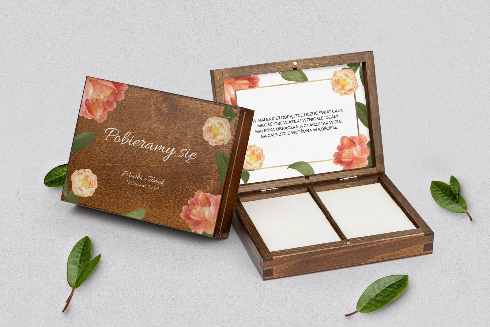 Na tej karcie produktu kupujesz Pudełka na obrączki w konfiguracji określonej w specyfikacji.
