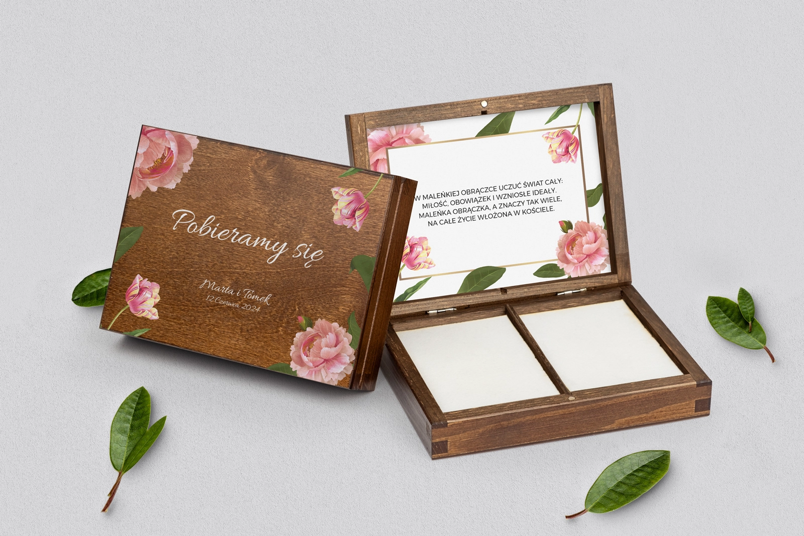 Na tej karcie produktu kupujesz Pudełka na obrączki w konfiguracji określonej w specyfikacji.