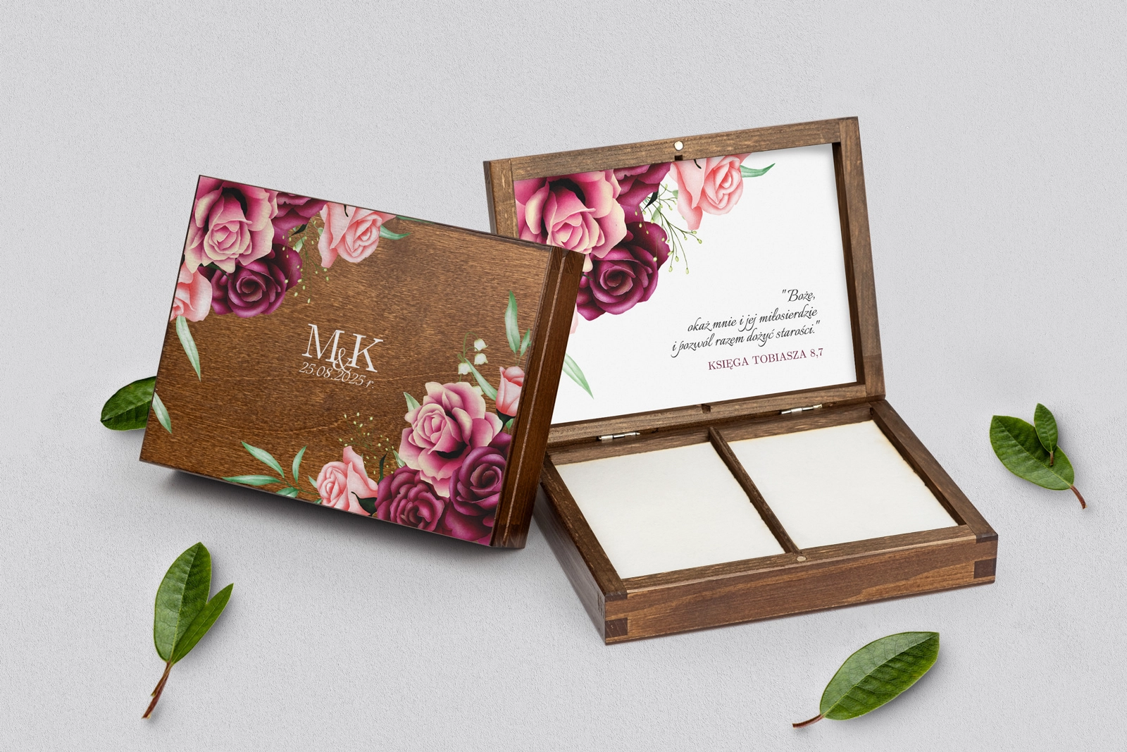 Na tej karcie produktu kupujesz Pudełka na obrączki w konfiguracji określonej w specyfikacji.