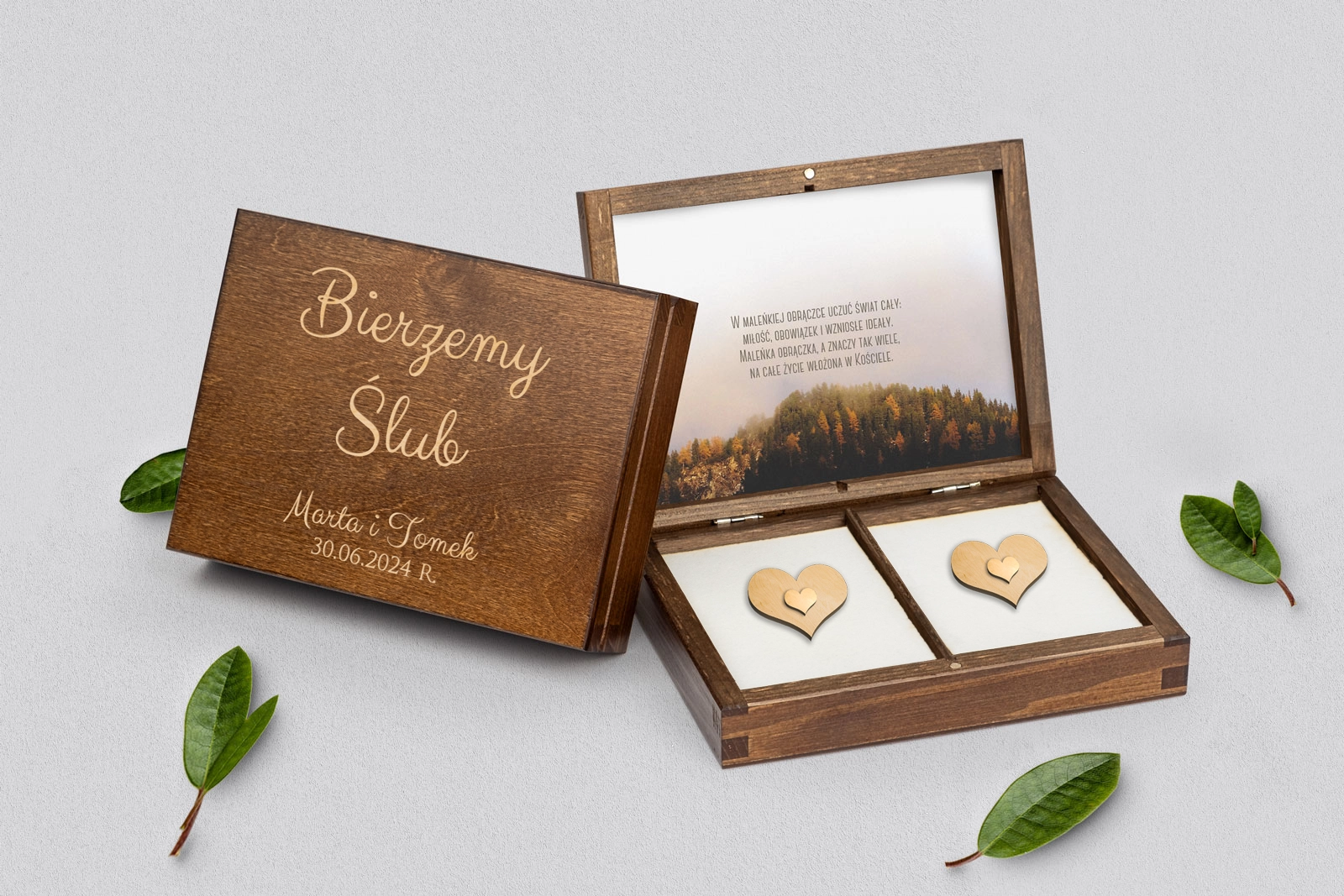 Na tej karcie produktu kupujesz Pudełka na obrączki w konfiguracji określonej w specyfikacji.