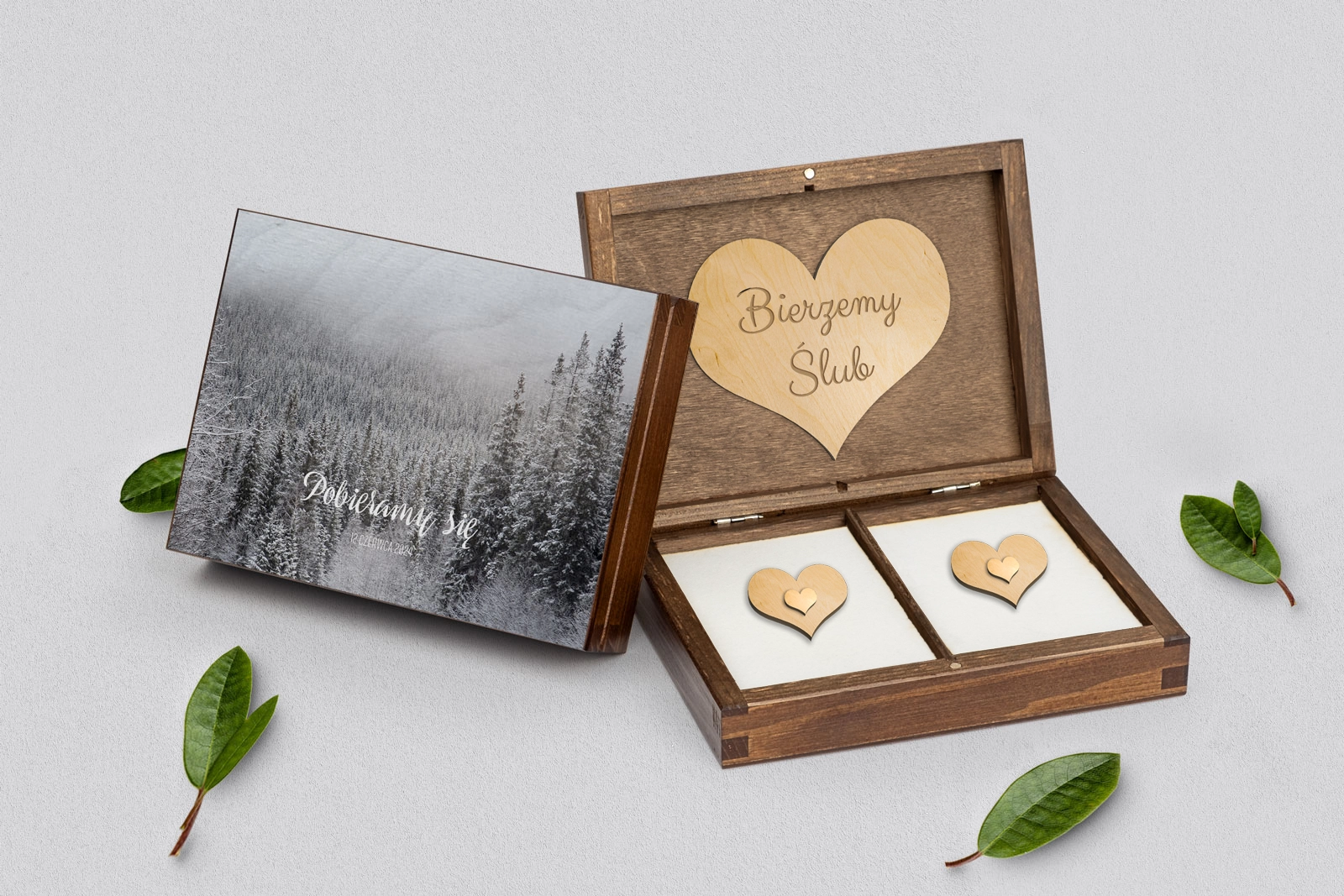 Na tej karcie produktu kupujesz Pudełka na obrączki w konfiguracji określonej w specyfikacji.
