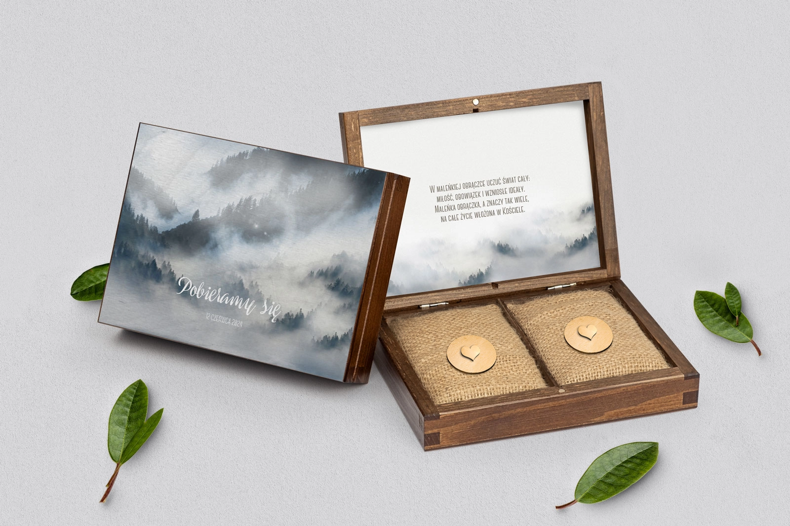 Na tej karcie produktu kupujesz Pudełka na obrączki w konfiguracji określonej w specyfikacji.