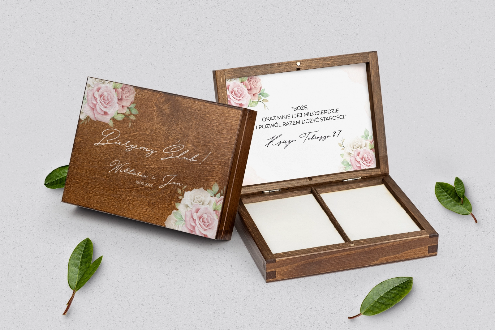 Na tej karcie produktu kupujesz Pudełka na obrączki w konfiguracji określonej w specyfikacji.