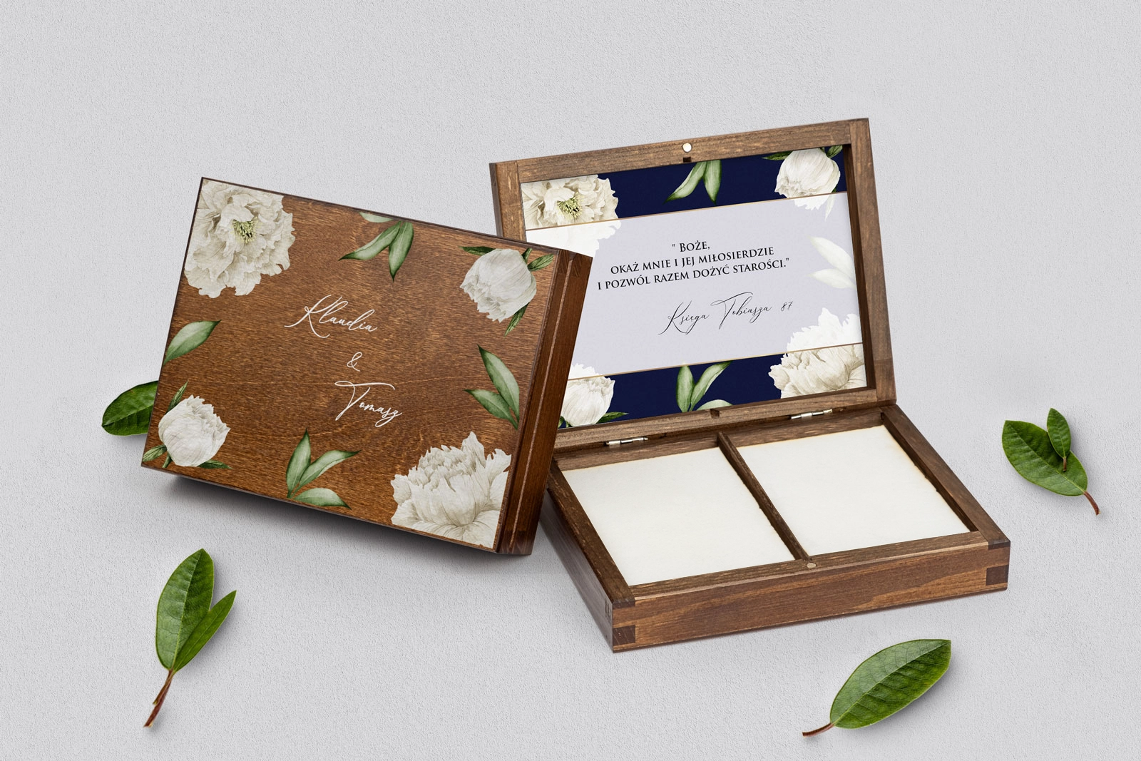 Na tej karcie produktu kupujesz Pudełka na obrączki w konfiguracji określonej w specyfikacji.