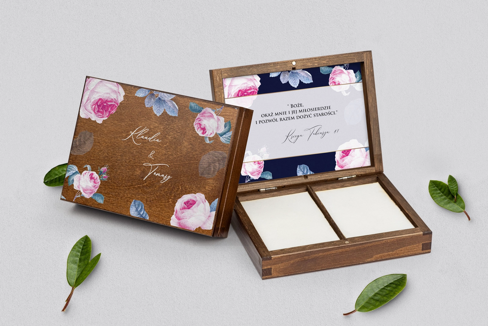 Na tej karcie produktu kupujesz Pudełka na obrączki w konfiguracji określonej w specyfikacji.