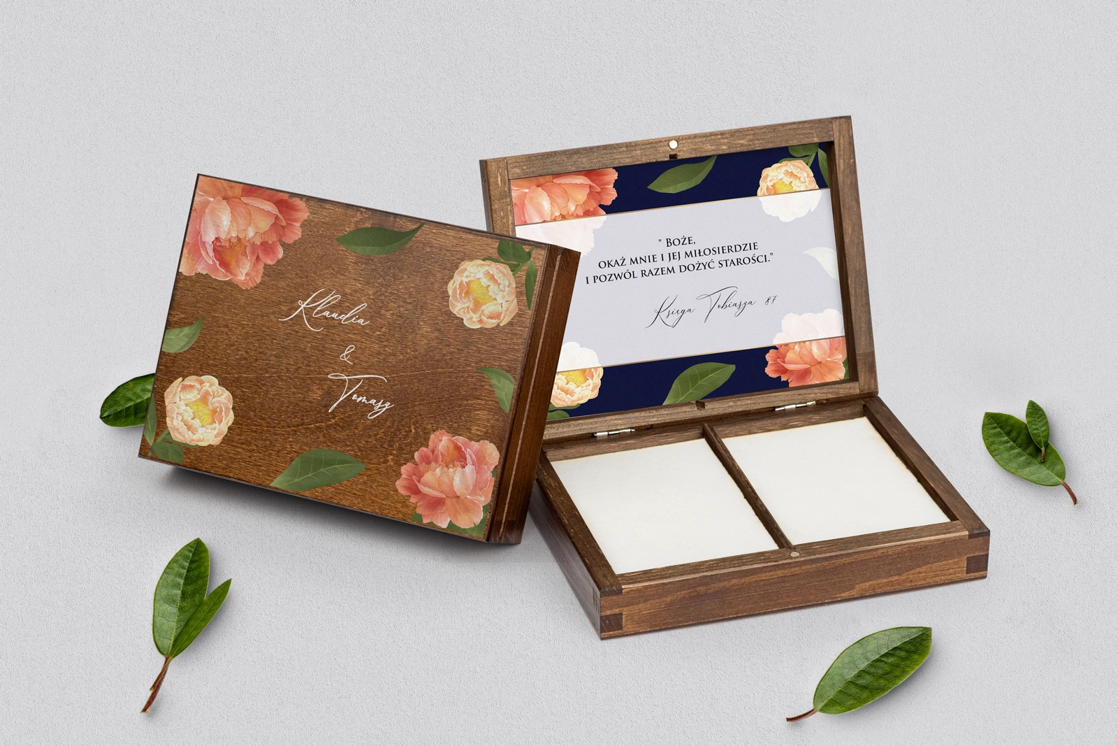Na tej karcie produktu kupujesz Pudełka na obrączki w konfiguracji określonej w specyfikacji.