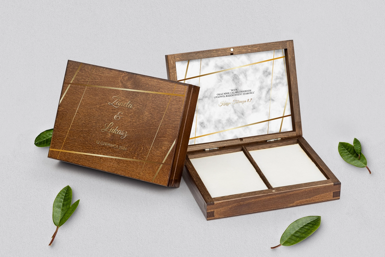 Na tej karcie produktu kupujesz Pudełka na obrączki w konfiguracji określonej w specyfikacji.