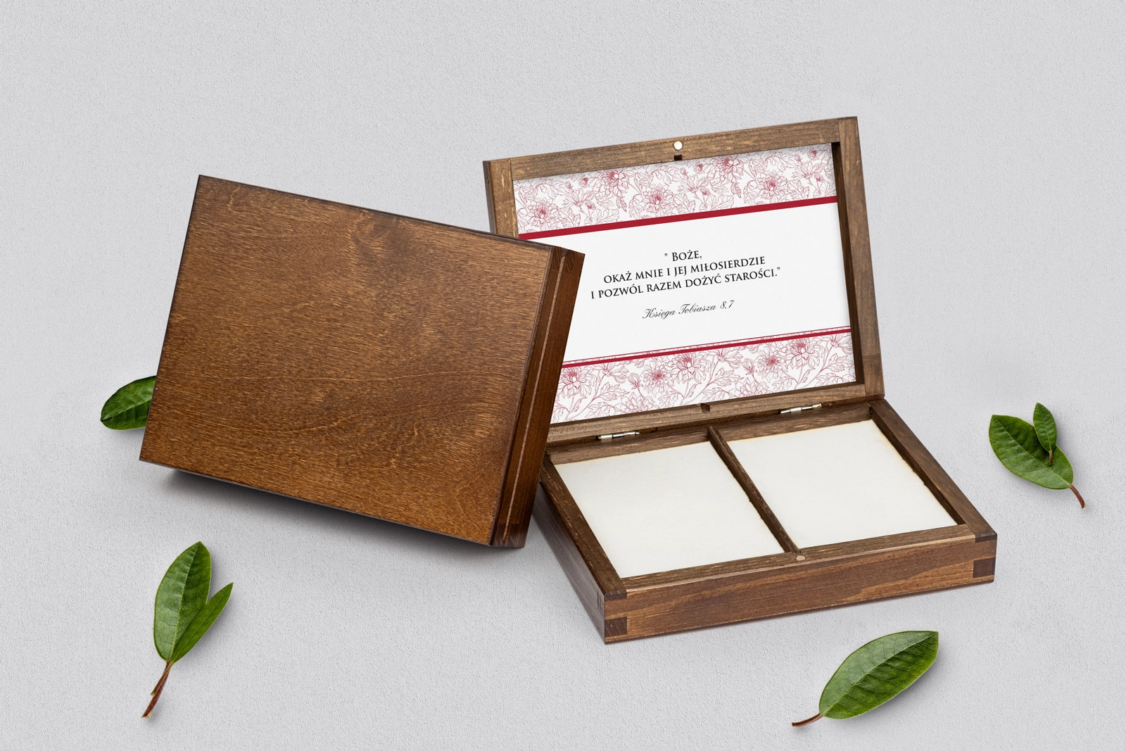 Na tej karcie produktu kupujesz Pudełka na obrączki w konfiguracji określonej w specyfikacji.