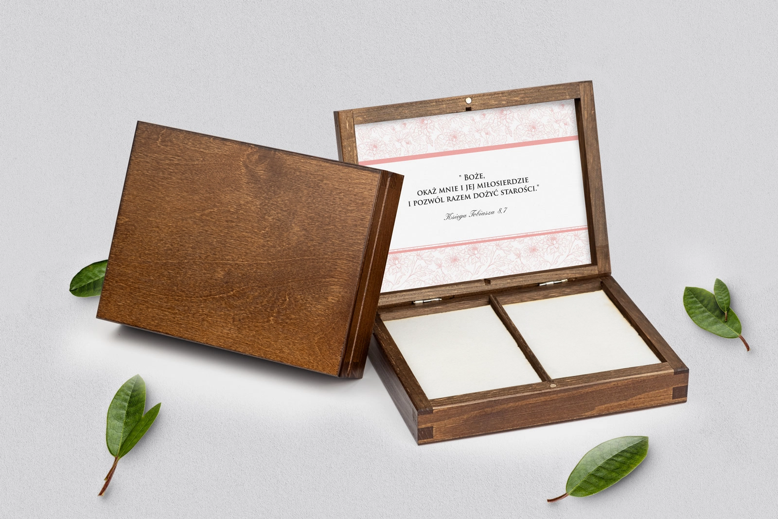 Na tej karcie produktu kupujesz Pudełka na obrączki w konfiguracji określonej w specyfikacji.