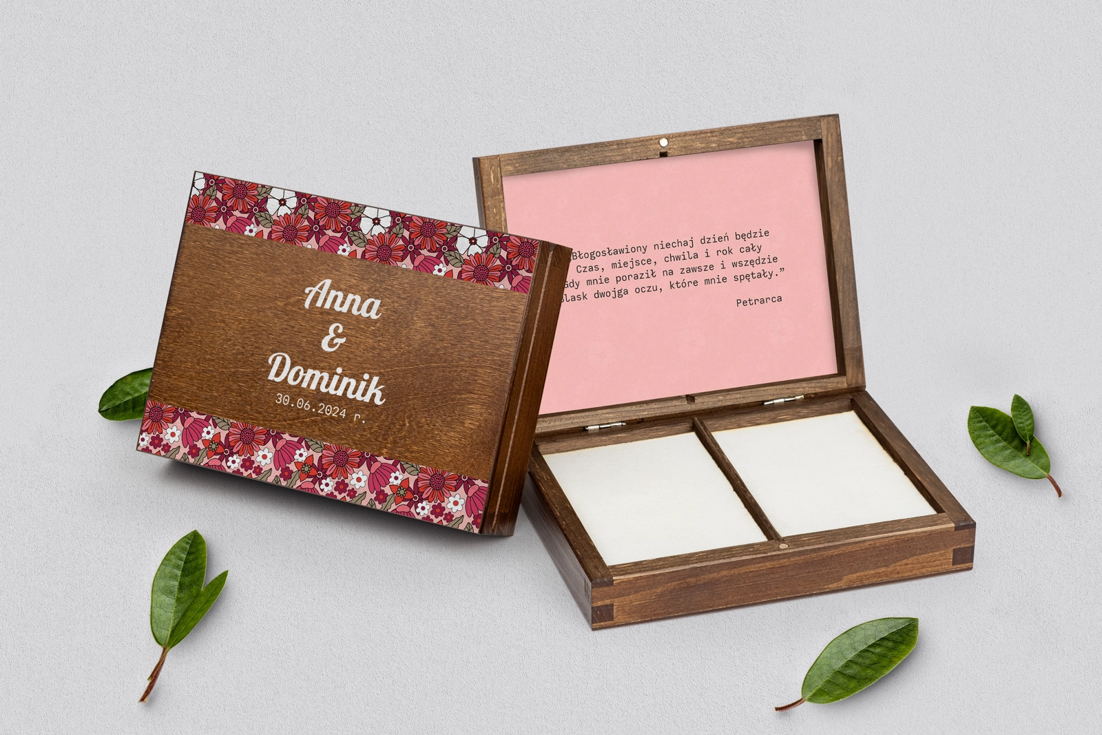 Na tej karcie produktu kupujesz Pudełka na obrączki w konfiguracji określonej w specyfikacji.