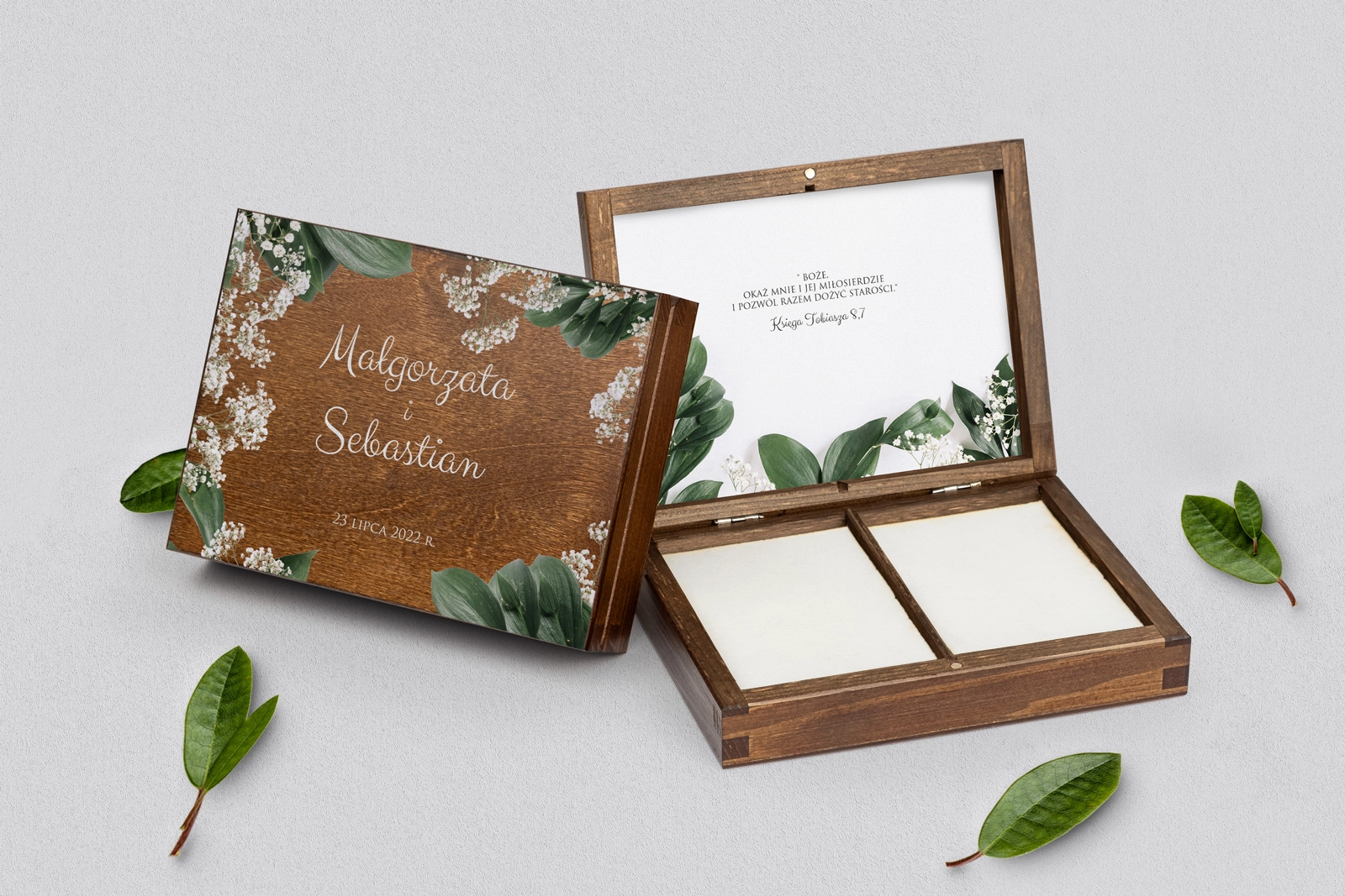 Na tej karcie produktu kupujesz Pudełka na obrączki w konfiguracji określonej w specyfikacji.