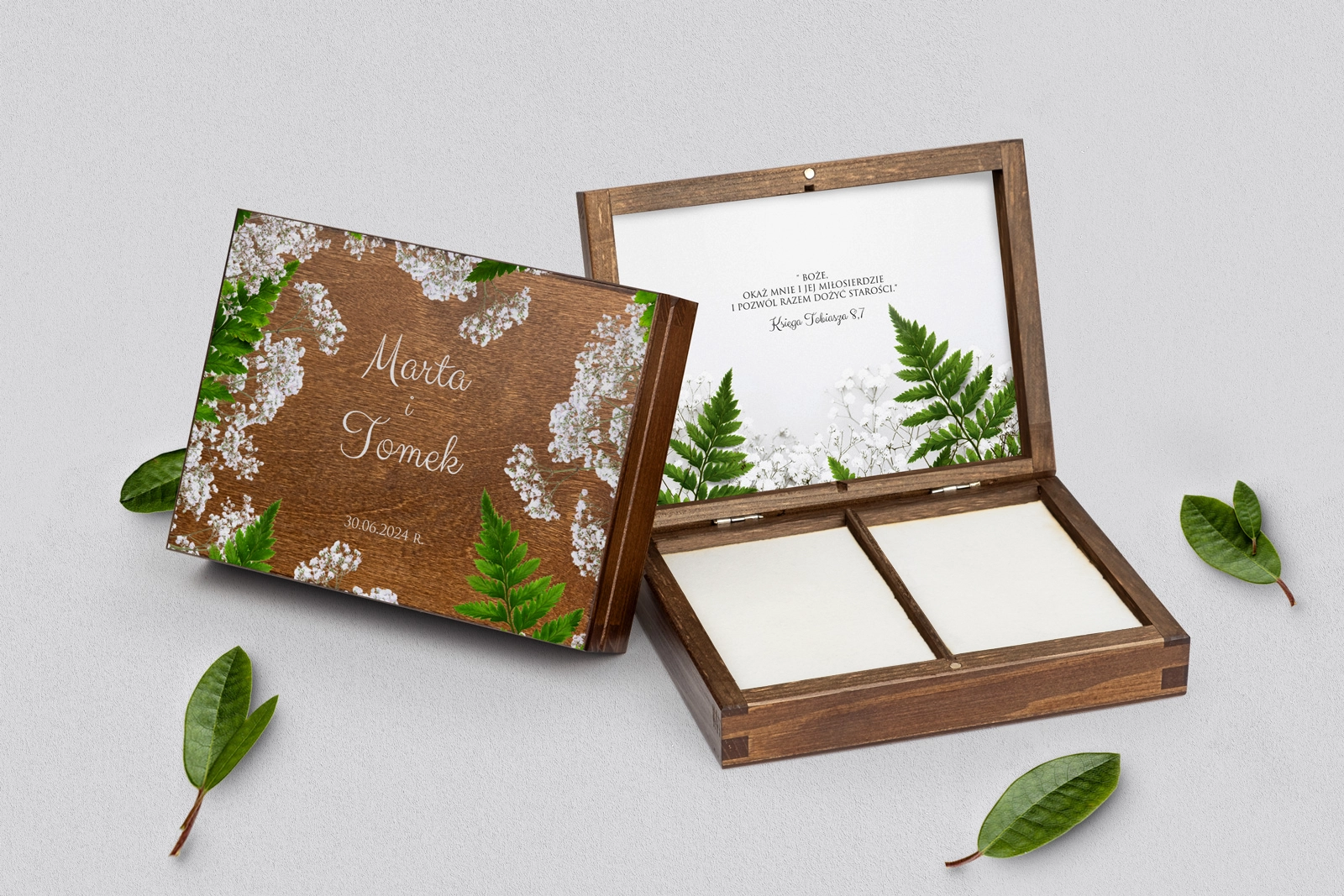 Na tej karcie produktu kupujesz Pudełka na obrączki w konfiguracji określonej w specyfikacji.
