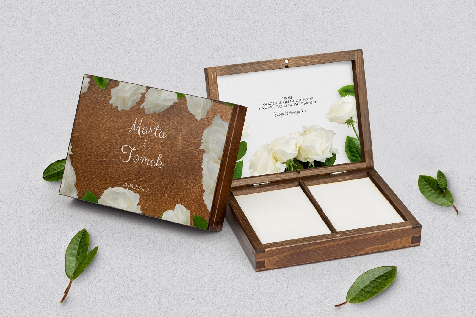 Na tej karcie produktu kupujesz Pudełka na obrączki w konfiguracji określonej w specyfikacji.