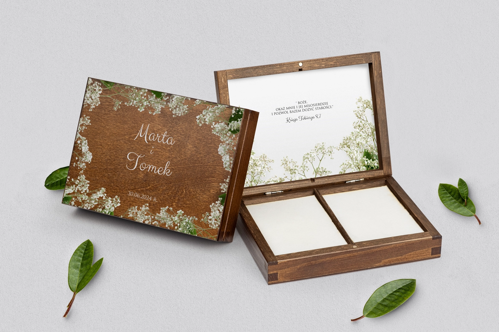 Na tej karcie produktu kupujesz Pudełka na obrączki w konfiguracji określonej w specyfikacji.