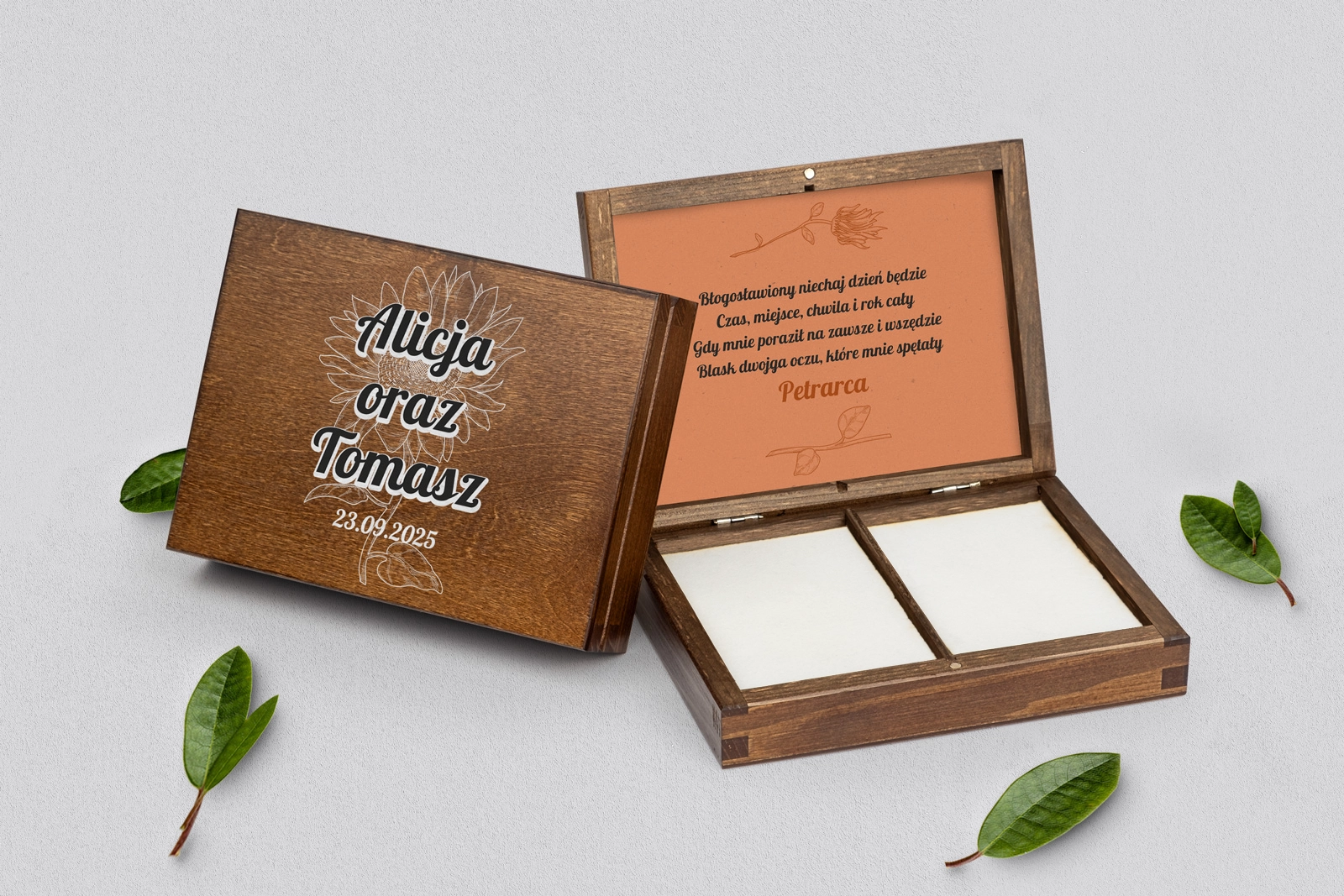 Pudełko na obrączki prostokątne brązowe - Sunflowers Motyw 2