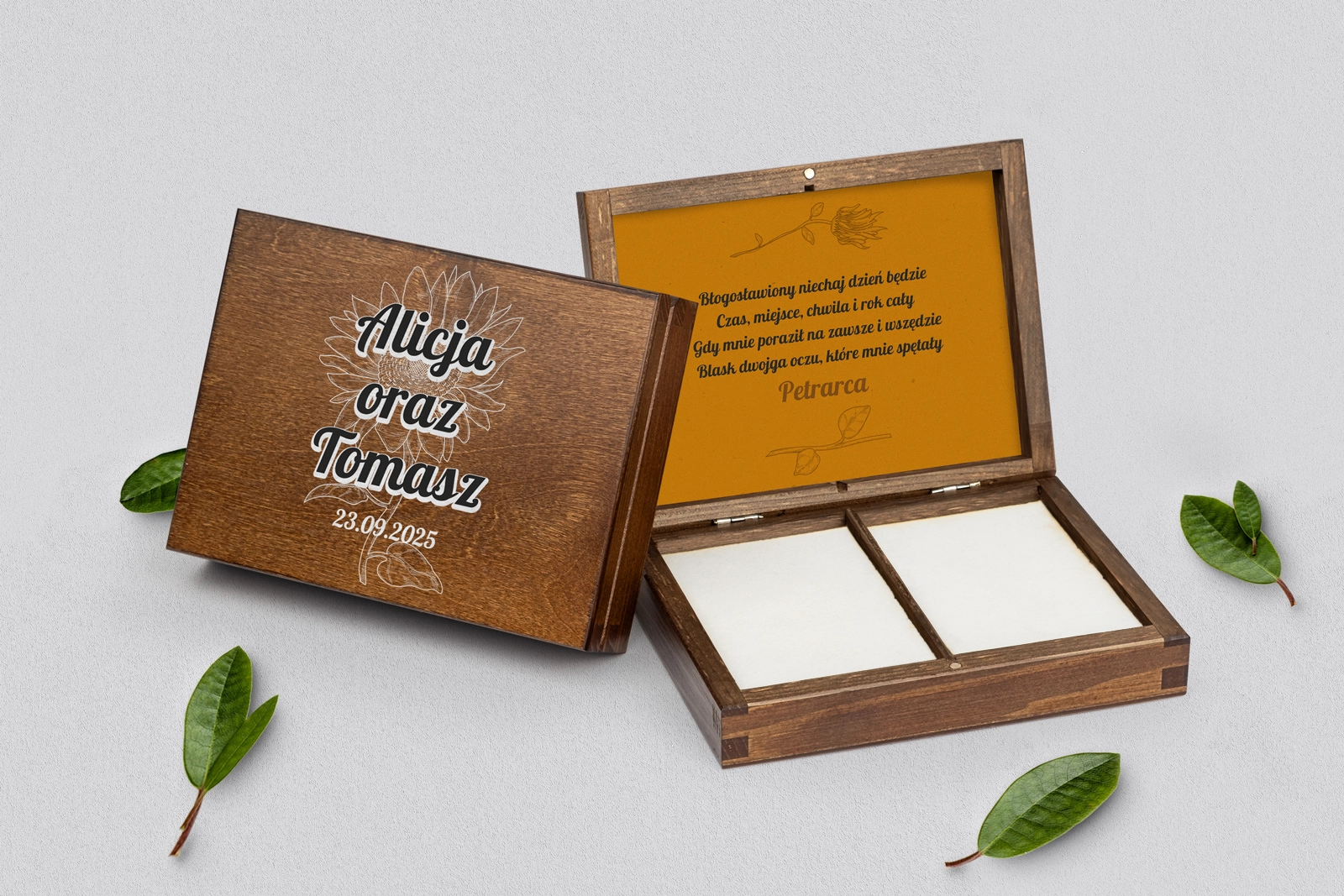 Pudełko na obrączki prostokątne brązowe - Sunflowers Motyw 3
