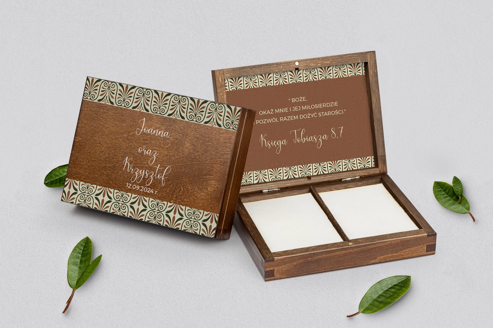 Pudełko na obrączki prostokątne brązowe - Vintage Motyw 3