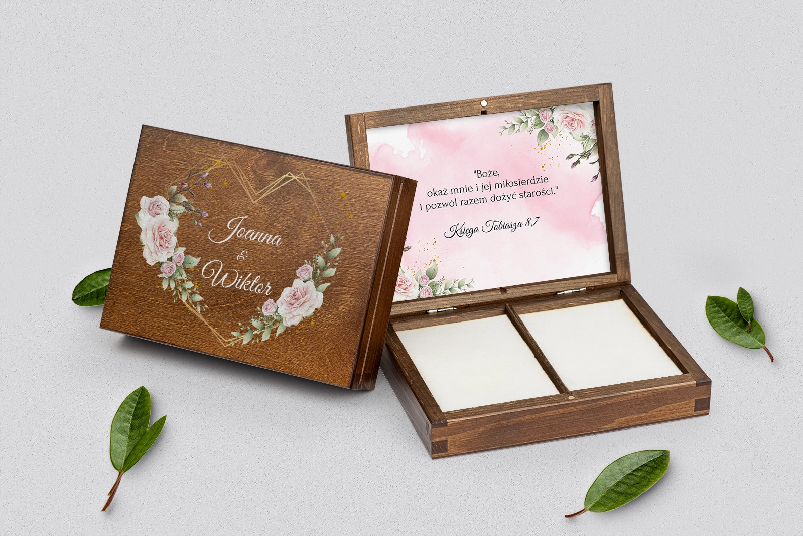 Na tej karcie produktu kupujesz Pudełka na obrączki w konfiguracji określonej w specyfikacji.