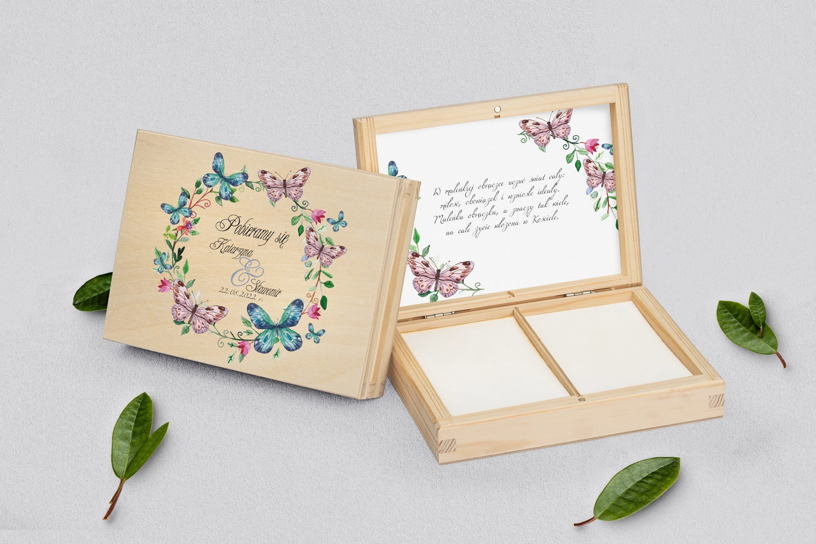 Na tej karcie produktu kupujesz Pudełka na obrączki w konfiguracji określonej w specyfikacji.