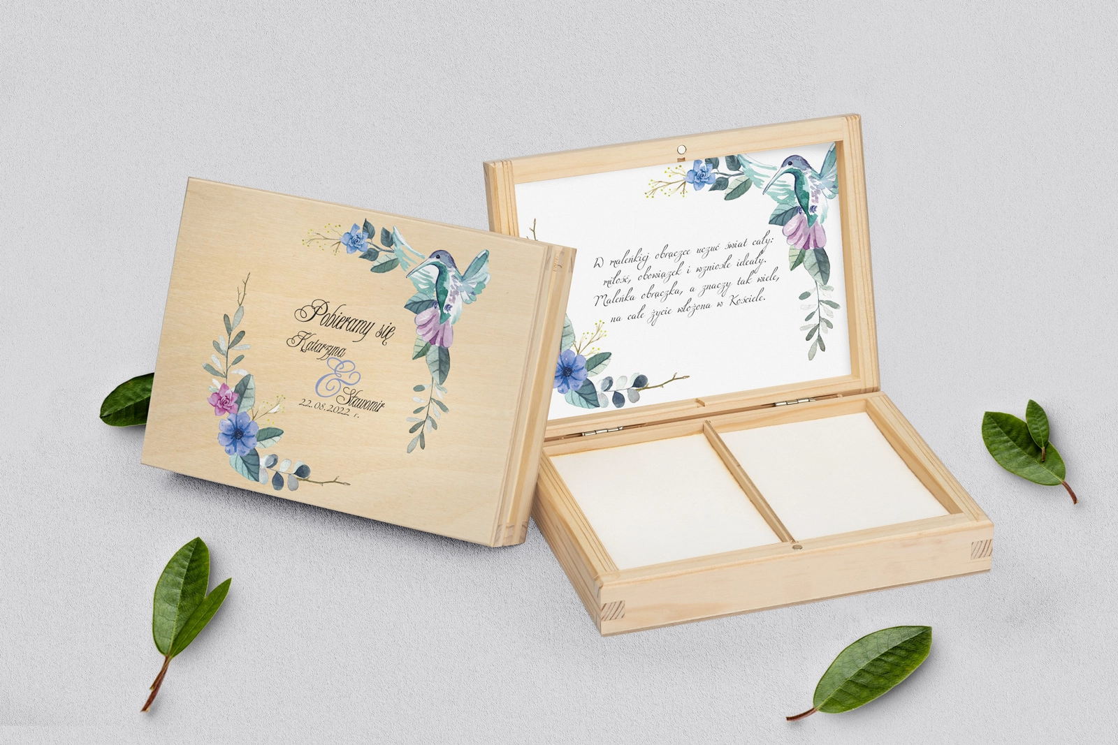 Na tej karcie produktu kupujesz Pudełka na obrączki w konfiguracji określonej w specyfikacji.