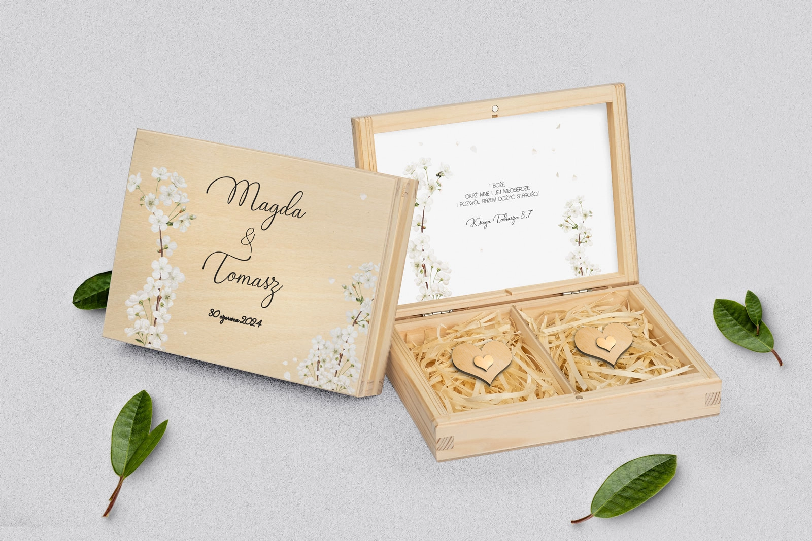 Na tej karcie produktu kupujesz Pudełka na obrączki w konfiguracji określonej w specyfikacji.