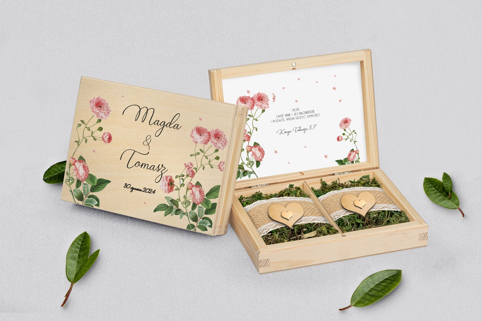 Na tej karcie produktu kupujesz Pudełka na obrączki w konfiguracji określonej w specyfikacji.