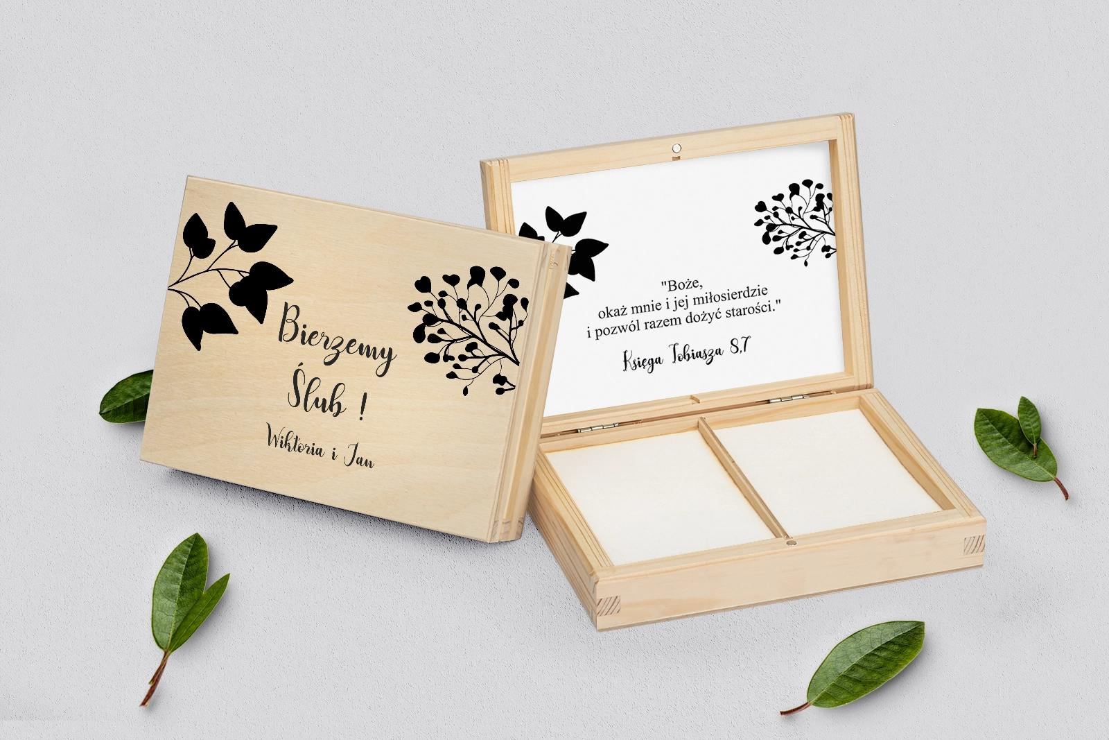 Na tej karcie produktu kupujesz Pudełka na obrączki w konfiguracji określonej w specyfikacji.