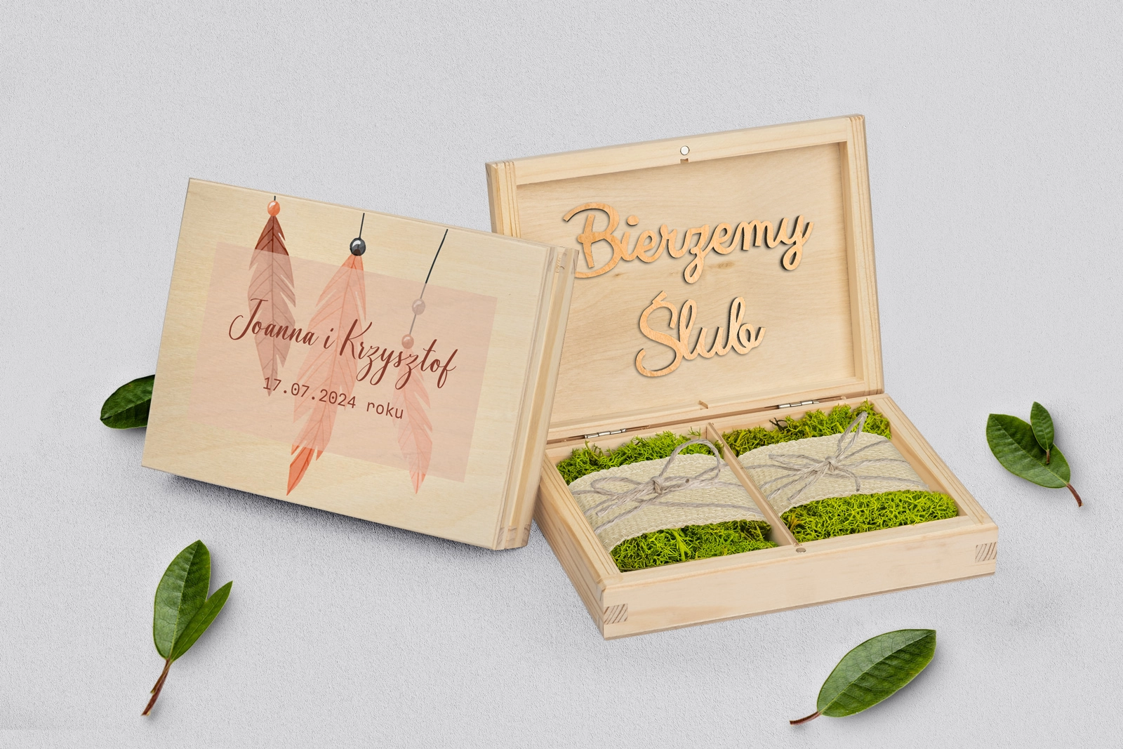 Na tej karcie produktu kupujesz Pudełka na obrączki w konfiguracji określonej w specyfikacji.