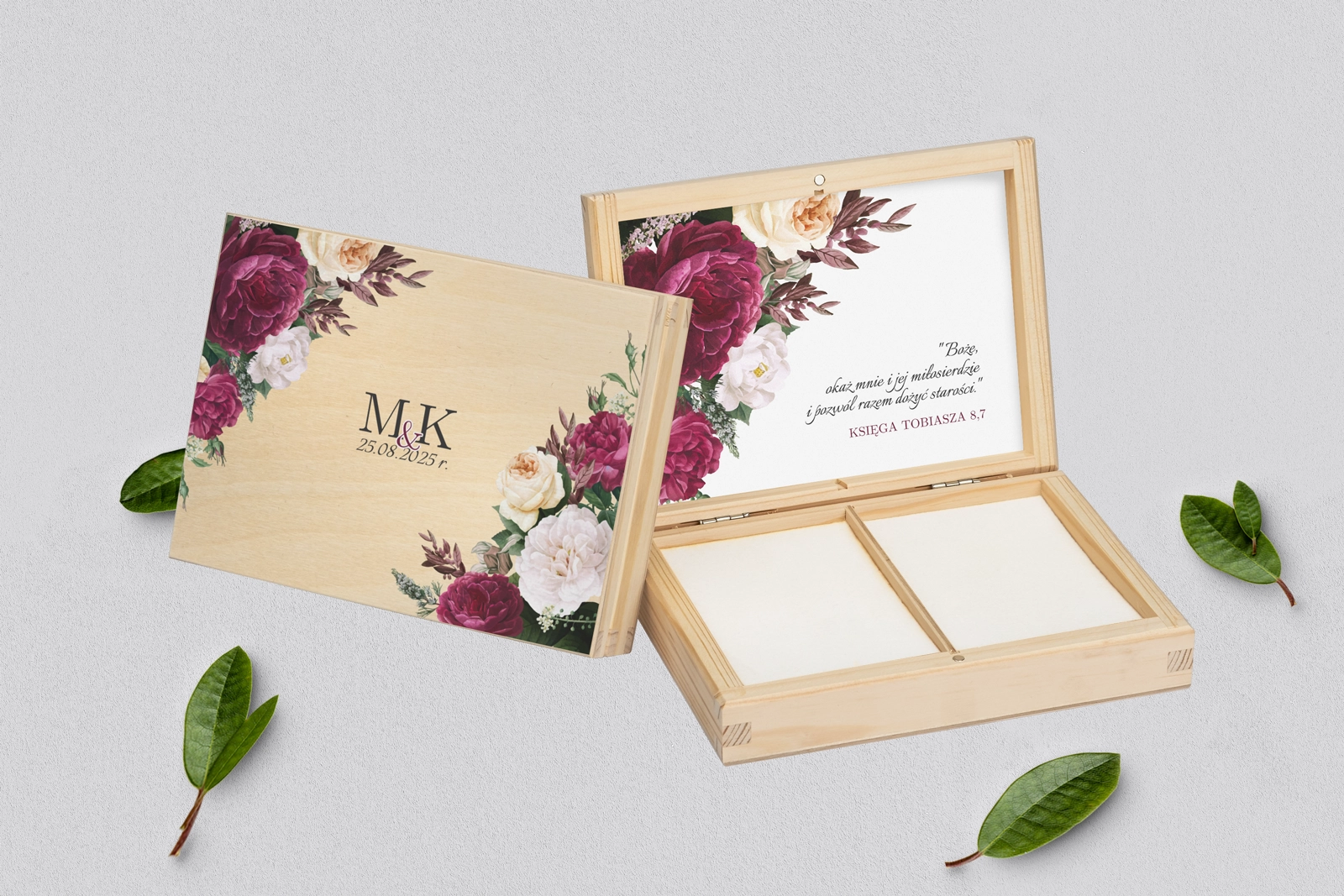 Na tej karcie produktu kupujesz Pudełka na obrączki w konfiguracji określonej w specyfikacji.