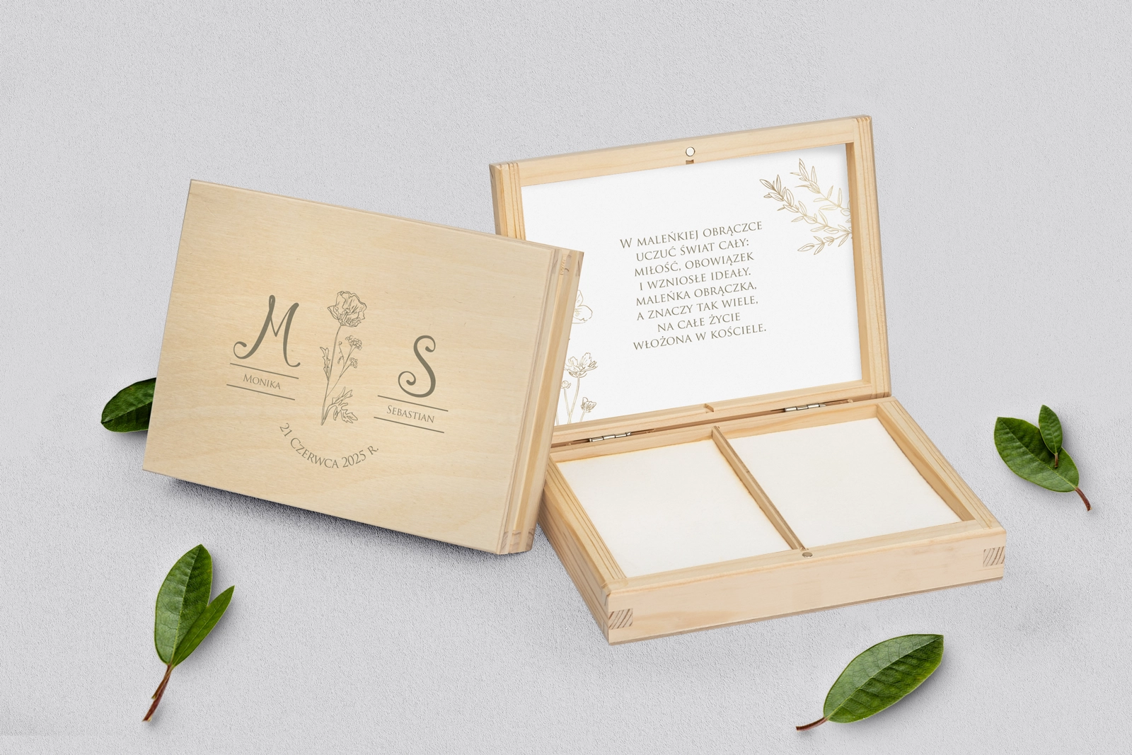 Na tej karcie produktu kupujesz Pudełka na obrączki w konfiguracji określonej w specyfikacji.