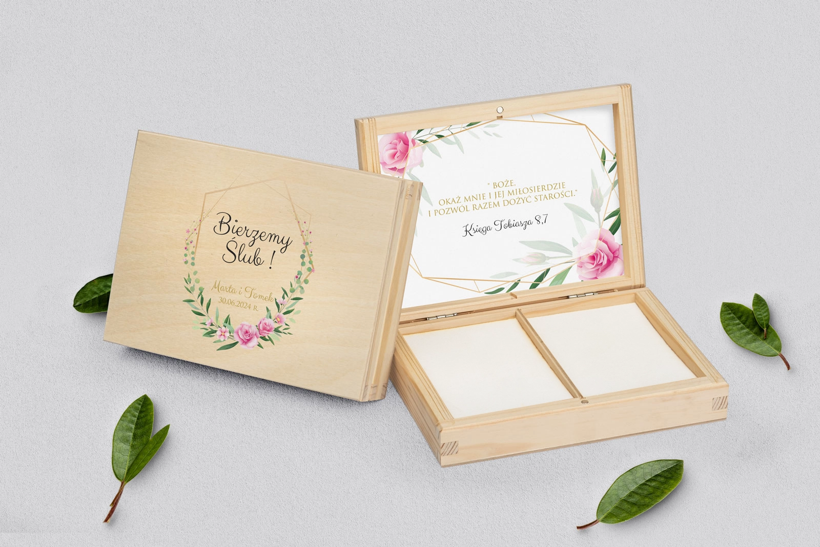 Na tej karcie produktu kupujesz Pudełka na obrączki w konfiguracji określonej w specyfikacji.